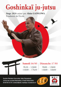 Les 29 et 30 novembre 2025, l’AMM organise avec la section Arts Martiaux de l’ASCCM un stage Goshinkaï ju-jutsu au gymnase de Marienthal.