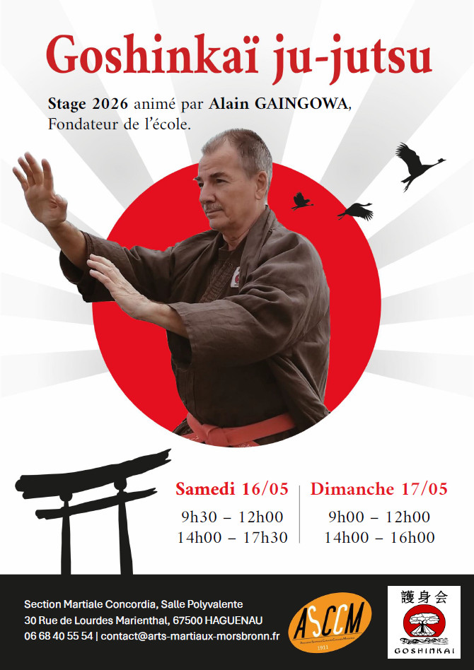 Le weekend du 22 mars 2026, l’AMM organise un cours spécial de Goshinkaï ju-jutsu à la salle polyvalente de Morsbronn-les-Bains, animé par Cédric HOEFFLER.